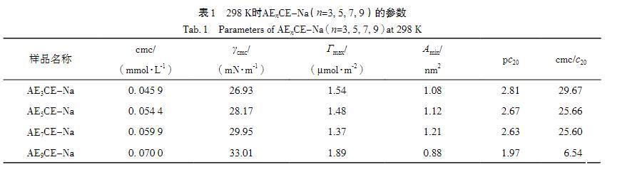 表1 298 K时AEnCE-Na(n=3,5,7,9)的参数