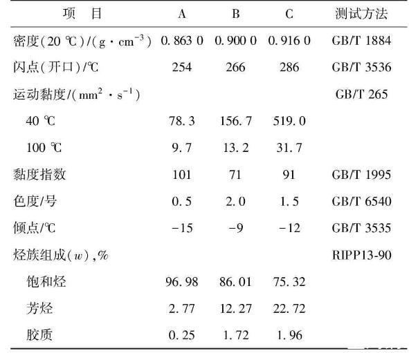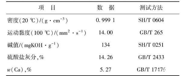 基础油:HVIⅡ-10,HVI750,HVI150BS,分别用A,B,C表示,其基本性质见表1。添加剂为烷基水杨酸盐复合剂(简称复合剂),其理化性质见表2。以上基础油和添加剂均由中国石化润滑油(上海)研究院提供。