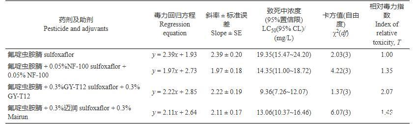 表4氟啶虫胺腈添加助剂对苹果黄蚜的毒力及增效作用