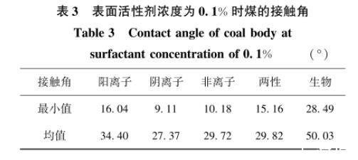 (2)表面张力、接触角的降低幅度大,能提高煤体表面的润湿效果。