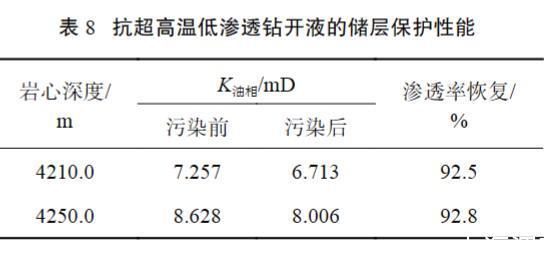 表8抗超高温低渗透钻开液的储层?;ば阅?