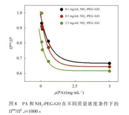 图8 PA和NH2-PEG-GO在不同质量浓度条件下的ПBM/ПΣ,t=1000 s